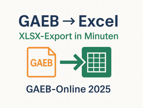 GAEB nach Excel: In Minuten in XLSX exportieren – mit GAEB‑Online 2025 Sie möchten ein Leistungsverzeichnis aus einer GAEB‑Datei in Microsoft Excel weiterbearbeiten – z. B. für Kalkulation, Freigaben oder Analysen? In diesem Leitfaden zeigen wir Schritt für Schritt, wie Sie mit GAEB → Excel GAEB‑Daten sauber in XLSX exportieren, typische Fehler vermeiden und Ihre Excel‑LVs teamfähig machen. ...