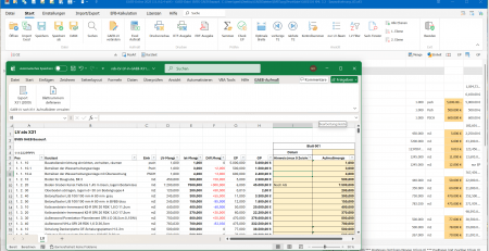 In Excel haben Sie maximale Freiheit: Sie können Zuschläge, Material- und Lohnkosten oder eigene Formeln einbauen – perfekt für eine individuelle Angebotskalkulation. - GAEB-Konformität